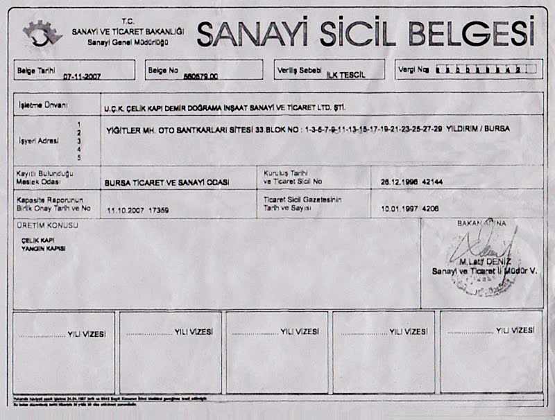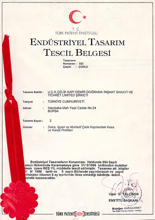 ENDÜSTRİYEL TASARIM TESCİL BELGESİ